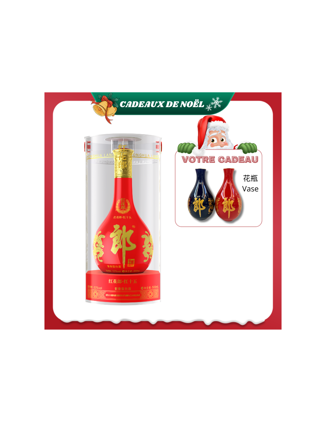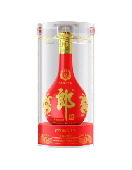 Honghua Lang (15) est réputé pour être un exemple emblématique du Baijiu à fragrance sauce selon le comité national des normes : un classique de qualité dans cette catégorie. Sa bouteille en céramique est minutieusement polie, offrant un style sobre mais audacieux.
