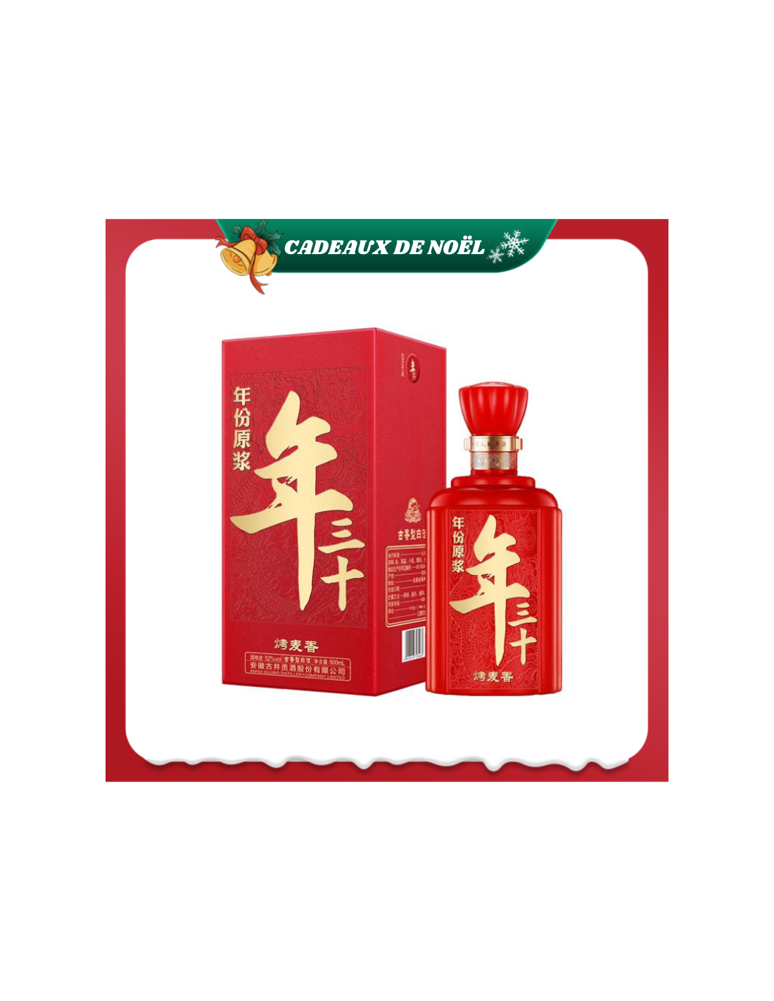 Le corps de la bouteille adopte le rouge chinois (« rouge Chine ») comme couleur principale, symbole de joie et de festivité. Le nom du produit, « Nian Sanshi » (Réveillon du Nouvel An), est présenté en lettres dorées, représentant la noblesse, la gloire et l’éclat. Le caractère « 年 » (Nian, année) est agrandi, mettant en avant une atmosphère festive, chaleureuse et dynamique, idéale pour célébrer le Nouvel An.