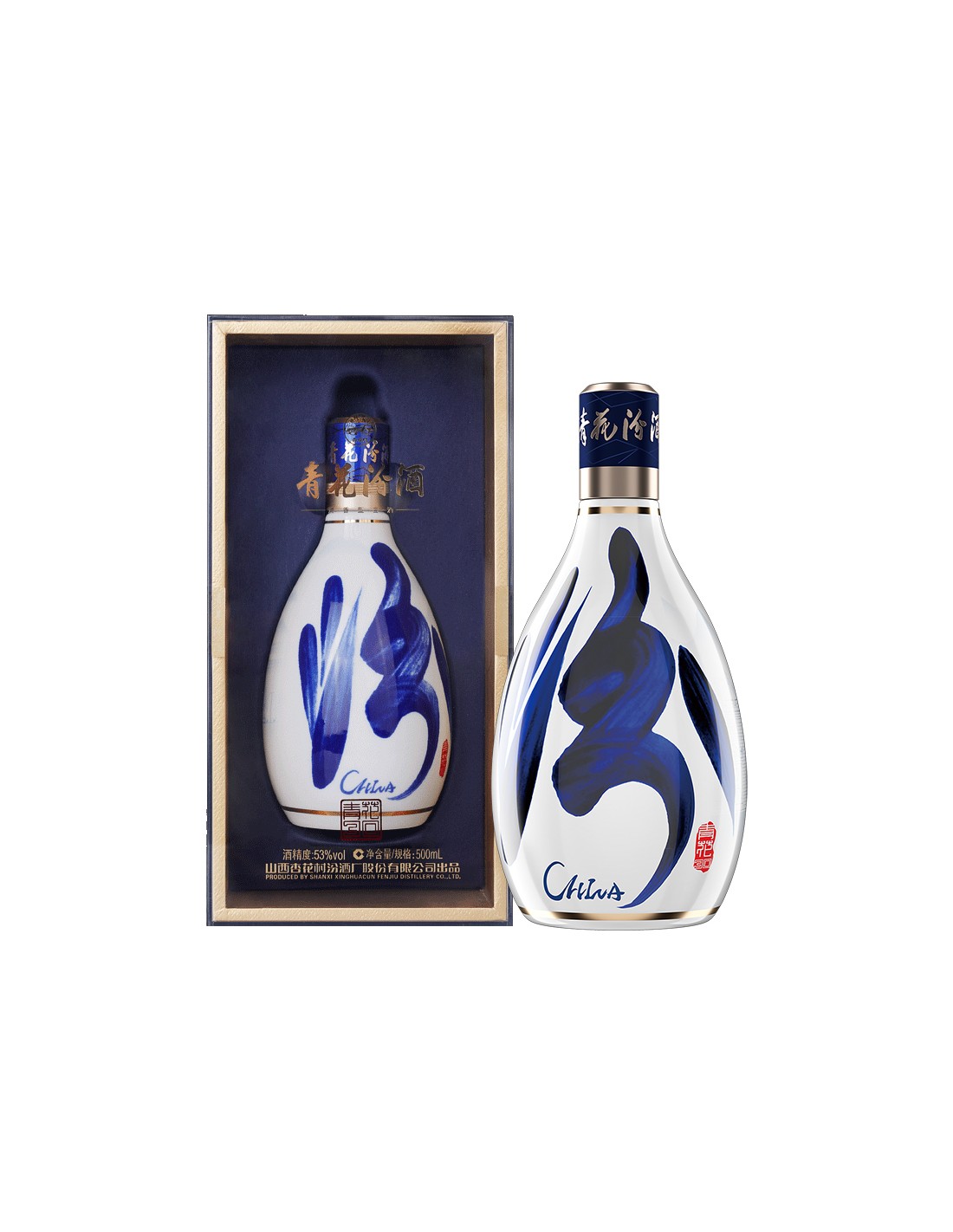 Shanxi Fenjiu, souvent qualifié de meilleur spiritueux doux chinois, est produit dans le village de Xinghua, dans la province de Shanxi. Il se distingue par une saveur douce, riche et élégante, avec des arômes floraux et fruités de noix et de prune. La bouteille de porcelaine bleue et blanche est inspirée des éléments culturels de la porcelaine chinoise.