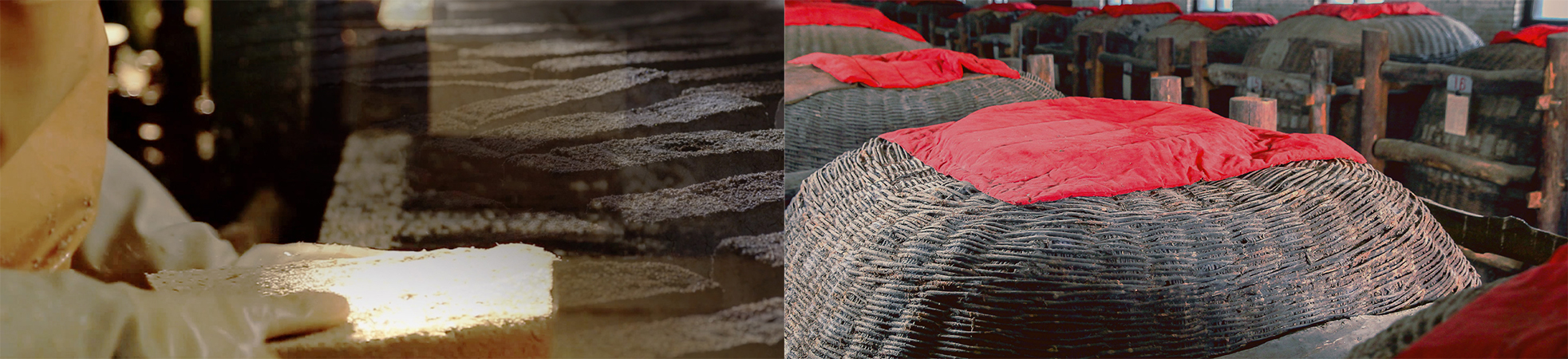 Le levain, ossature du baijiu : « Le levain est l’os du baijiu ». Fabriqué à partir d’orge, de blé et de pois, fermenté à température moyenne-haute dans des cuves traditionnelles, il confère au Xifeng Jiu son bouquet aromatique riche et distinctif.