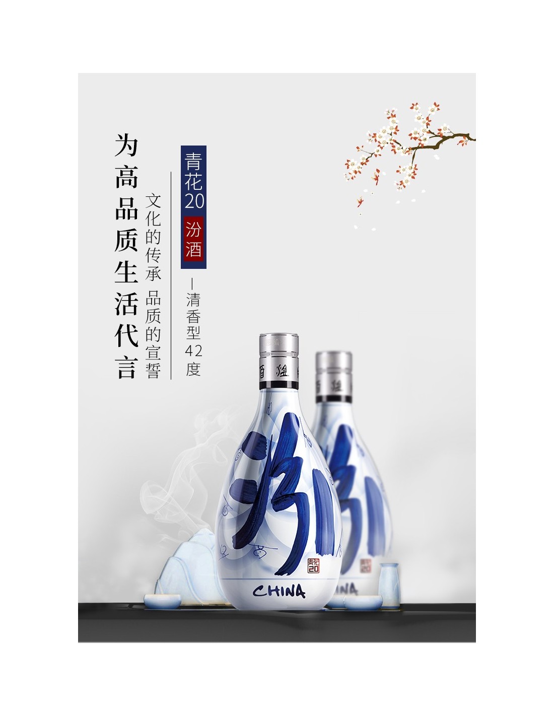 采用中国核心文化要素“国瓷”---青花瓷,为外包装。青花瓷淡雅脱俗、高贵深邃堪称国粹,汾酒博大精深、源远流长享誉四海,名酒名瓷古朴、典雅,相映成辉。青花瓷汾酒实为中华“瓷酒国粹”文化相结合的经典之作。